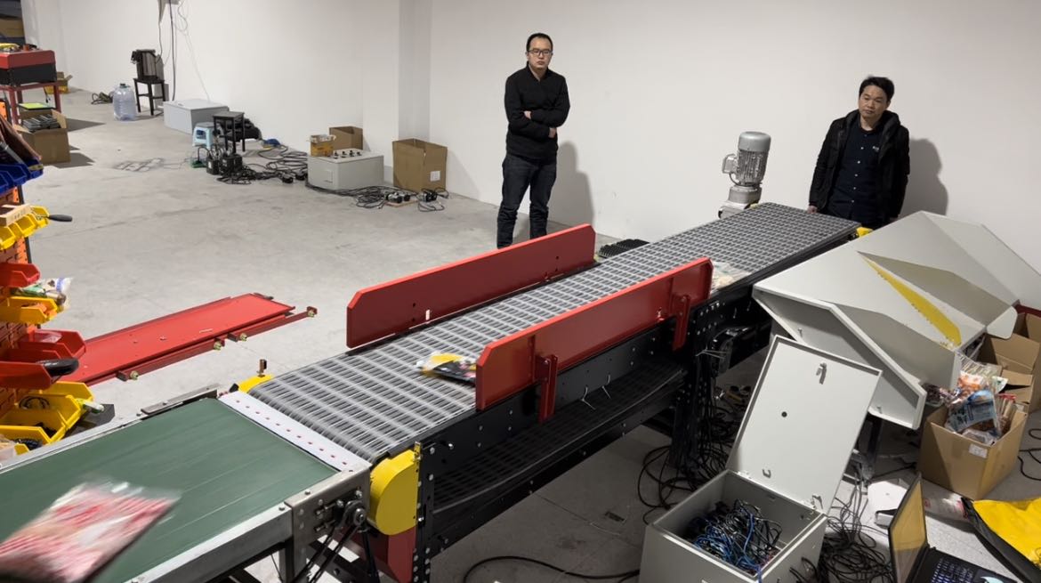 包胶电滚筒斜摆轮分拣机